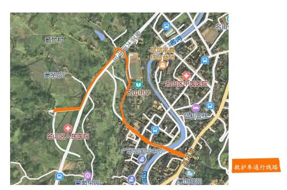 交警为名山区医院救护车通行规划了一条专用通道:皇茶大道—水井湾(小叶烧鹅)村道—上桥—名山中学后校门道路通行。