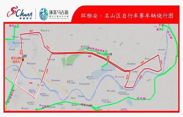 2021年9月30日07时30分至13时00分,蒙顶山牌坊—蒙顶山大道—茶都大道—彩虹北路—皇茶大道—吴理真路—江边街(杰翎雅苑河边)—皇茶大道—蒙顶山牌坊,该环线道路两侧实行全封闭,名山城区过境车辆禁止通行。届时,上述路段禁止停放一切车辆。