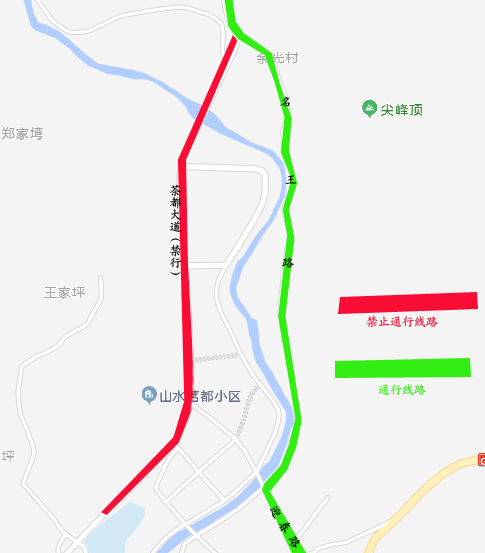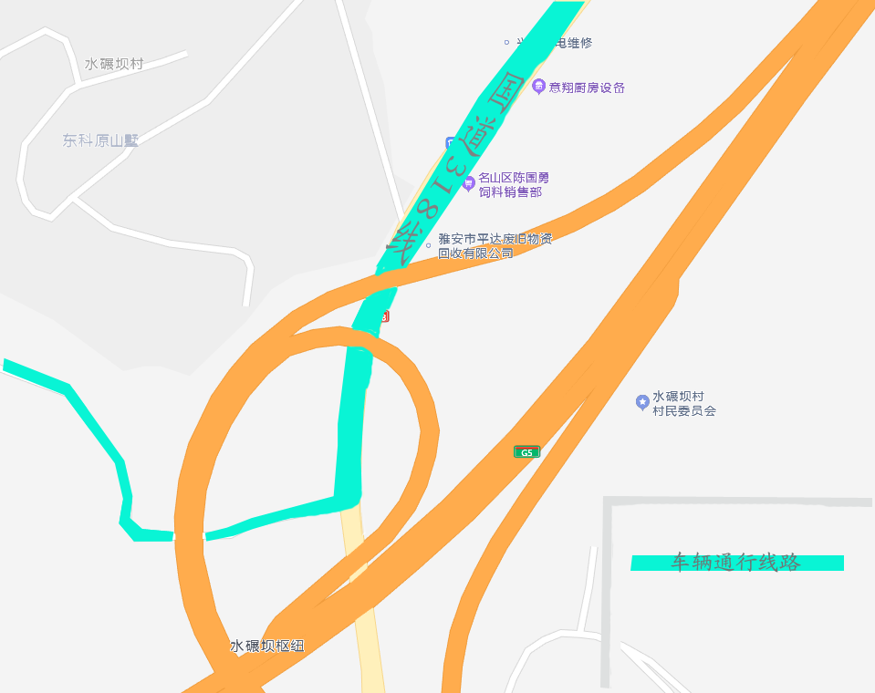 沿国道318线往金鸡关方向行驶,行驶至G5京昆高速水碾坝枢纽下,右转入村道前往雅安。